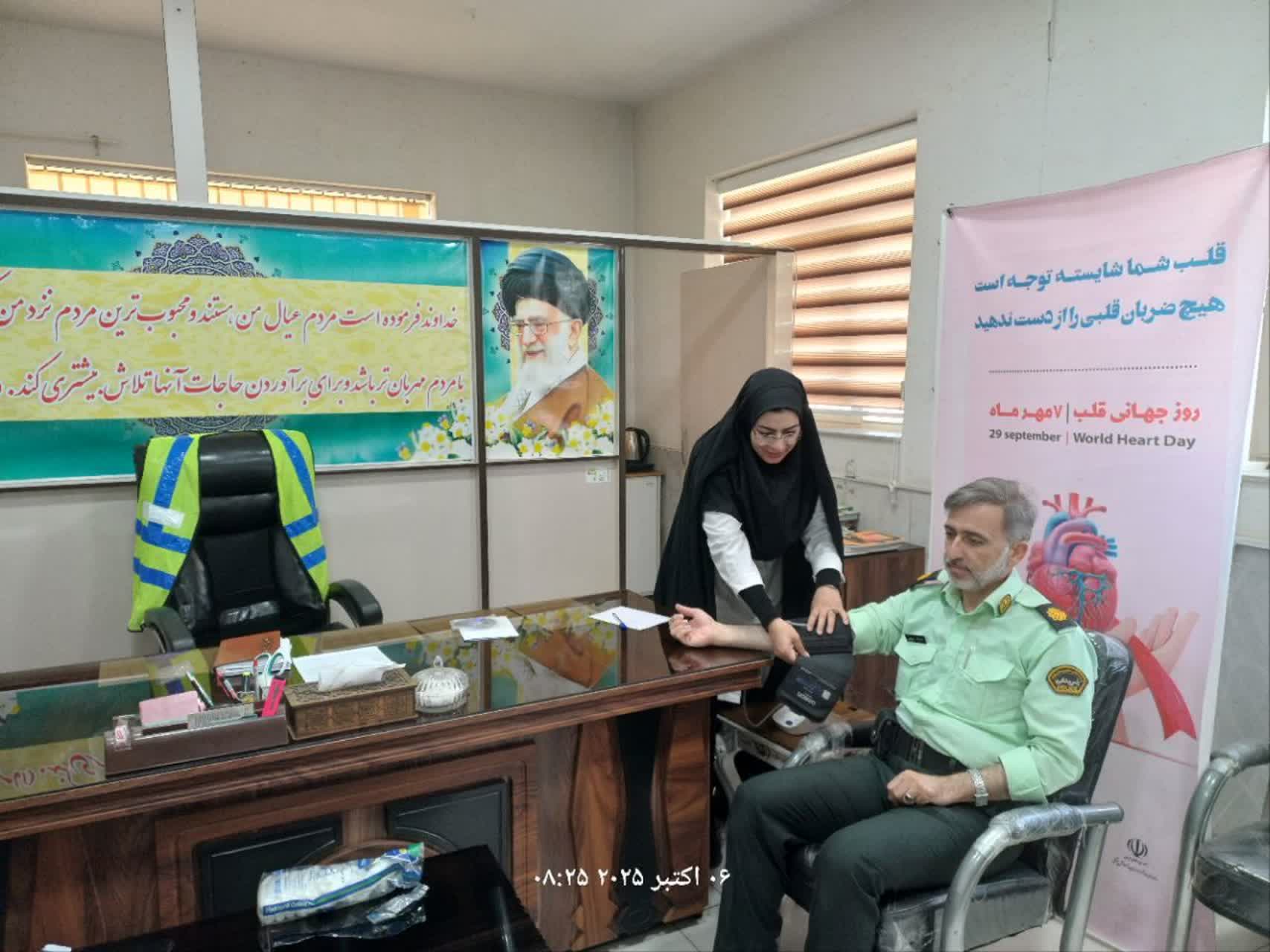 " ⭕️حضور آقای دهقانی و خانم احمدی به مناسبت هفته نیروی انتظامی وروزجهانی قلب در کلانتری شهر اژیه وغربالگری فشارخون ،قندخون وچربی خون "