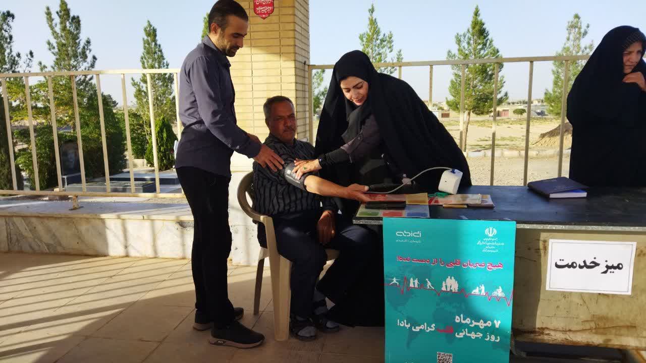 به مناسبت هفته دفاع مقدس و همزمان با روز جهانی قلب، میز خدمت سلامت توسط مراقب سلامت مرکز اژیه